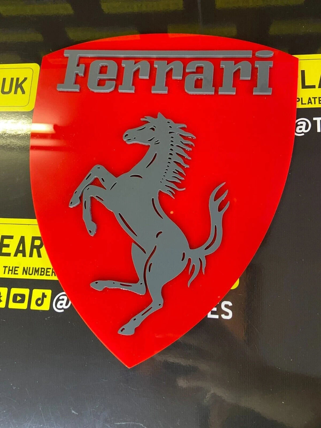 3D Acrylic Stylish Ford Car/Man Cave/Novelty Sign - Ferrari Red/Grey Font