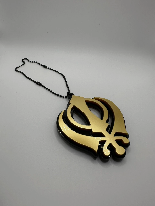 Khanda Punjabi Sikh Singh Kaur Pendant Car Rear Mirror Hanging Gold Acrylic