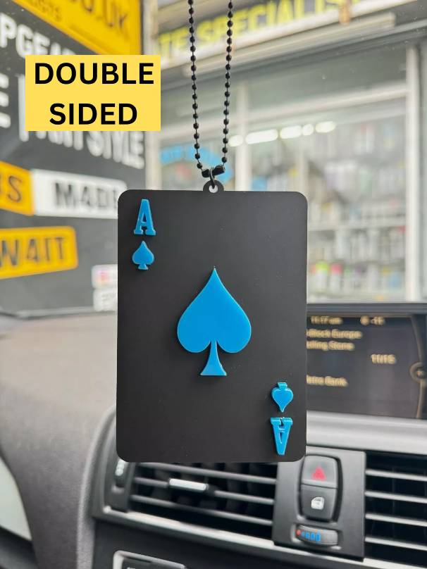 Ace of Spades Unique Stylish Pendant Car Rear Mirror Hanging Black/Blue Acrylic