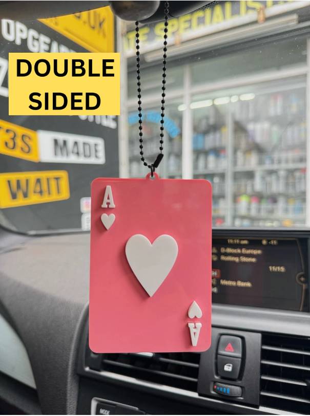 Ace of Spades Unique Stylish Pendant Car Rear Mirror Hanging Pink/White Acrylic