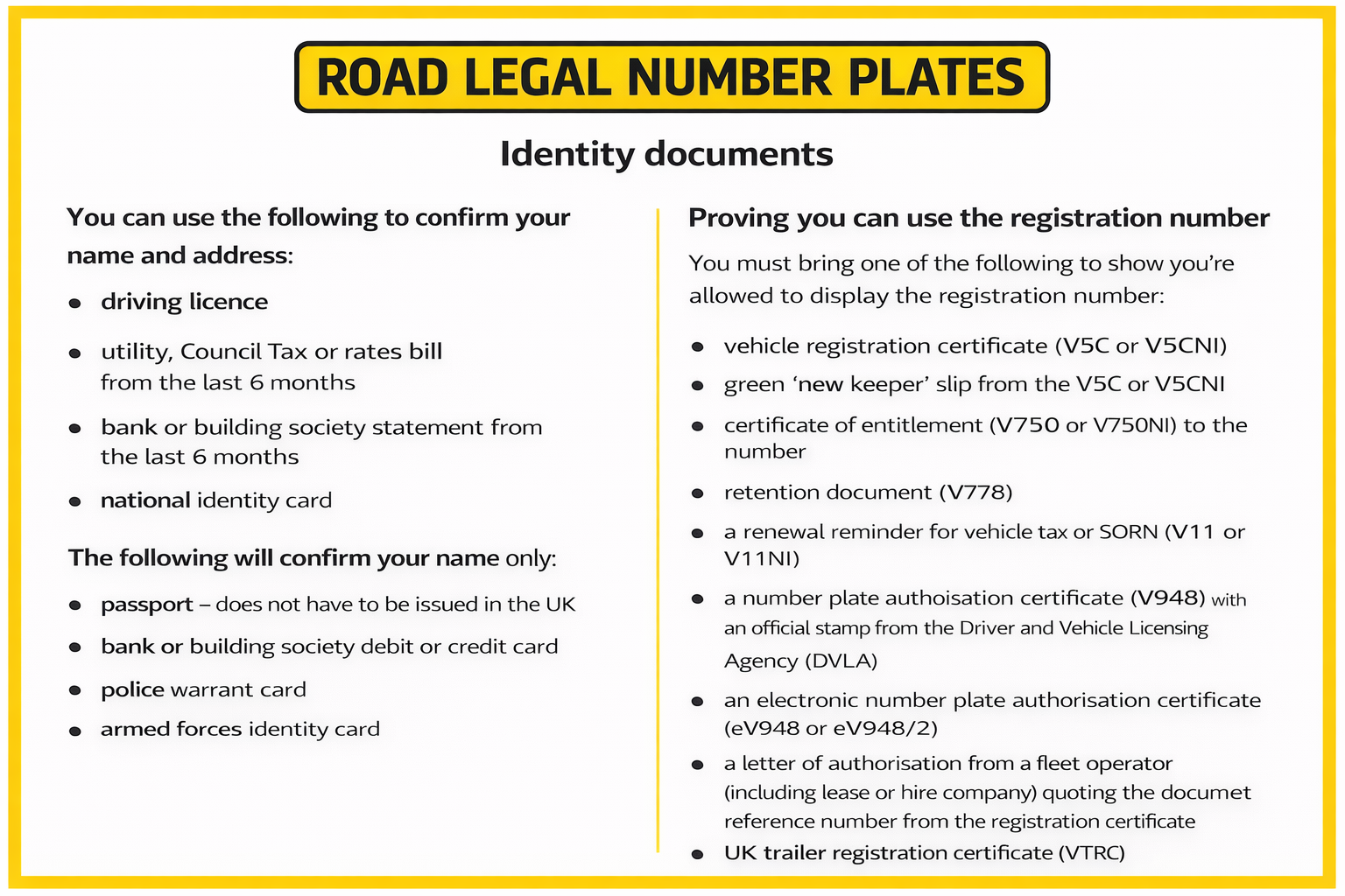 For full details on acceptable legal documents, please visit the DVLA website here