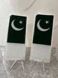 Glossy Pakistan flag display featuring the crescent and star in classic green and white. Clean, bold design with a smooth finish.