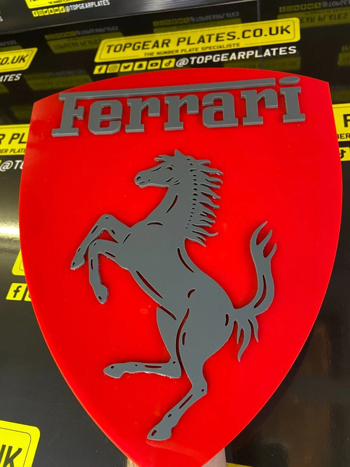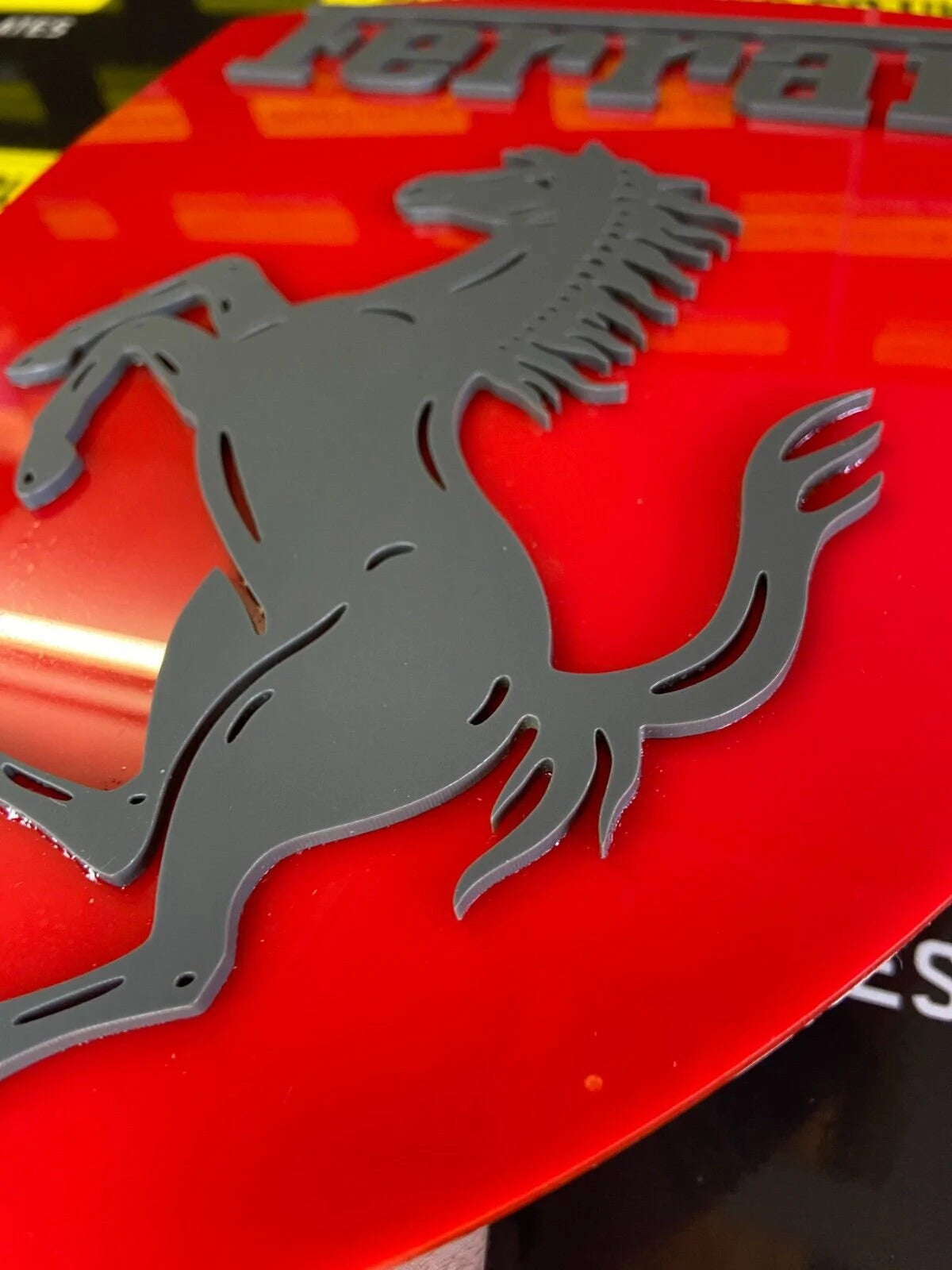 3D Acrylic Stylish Ford Car/Man Cave/Novelty Sign - Ferrari Red/Grey Font