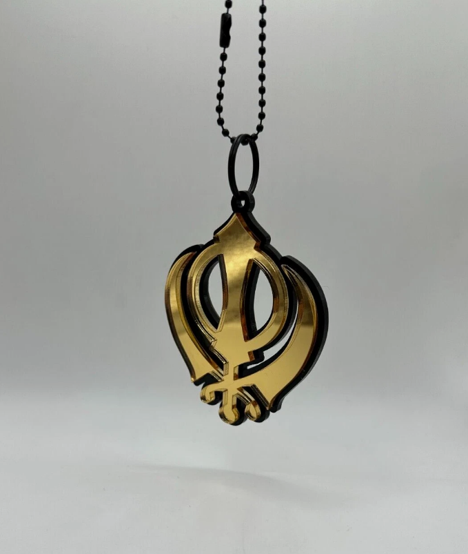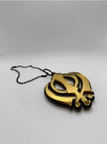Chrome gold acrylic Punjabi Sikh rear-view mirror hanging charm. Lightweight, durable, and adds a cultural, premium touch to your car interior.