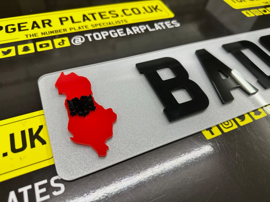2x 4D Acrylic Stylish Car Number Plate ALBANIA Flag Map Stickers Side Badges
