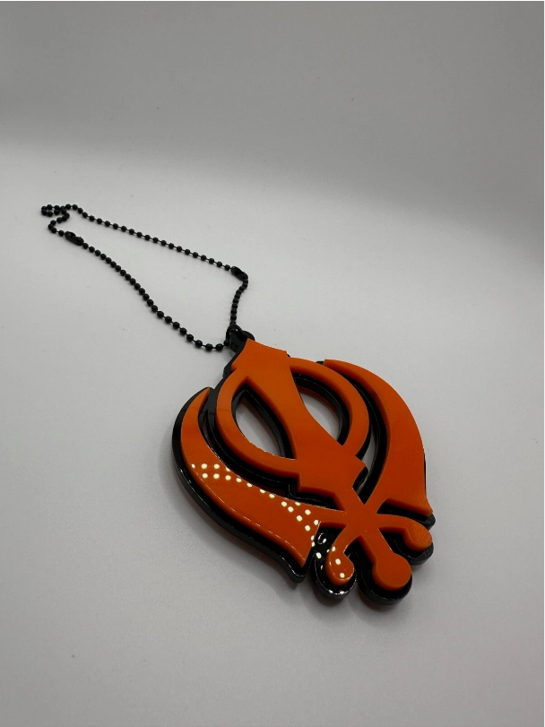 Show your Sikh pride with this Khanda Punjabi pendant made from vibrant orange acrylic. Perfect for hanging on your car rearview mirror, it adds a meaningful and stylish touch to your vehicle.